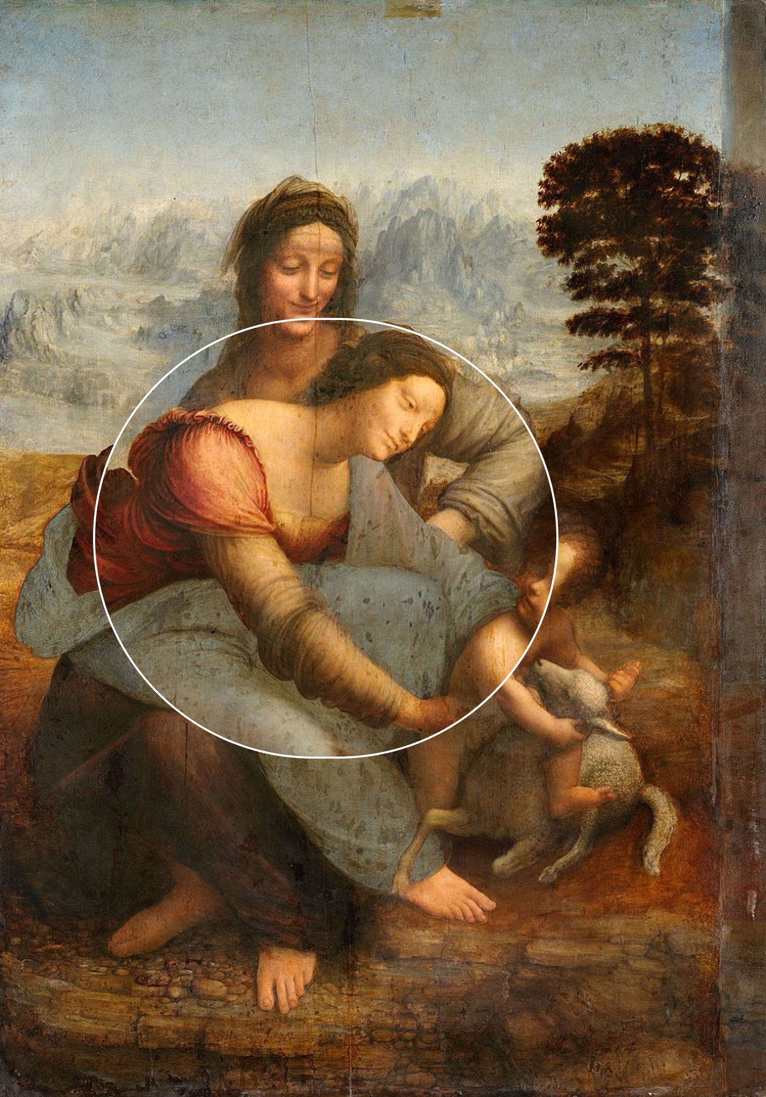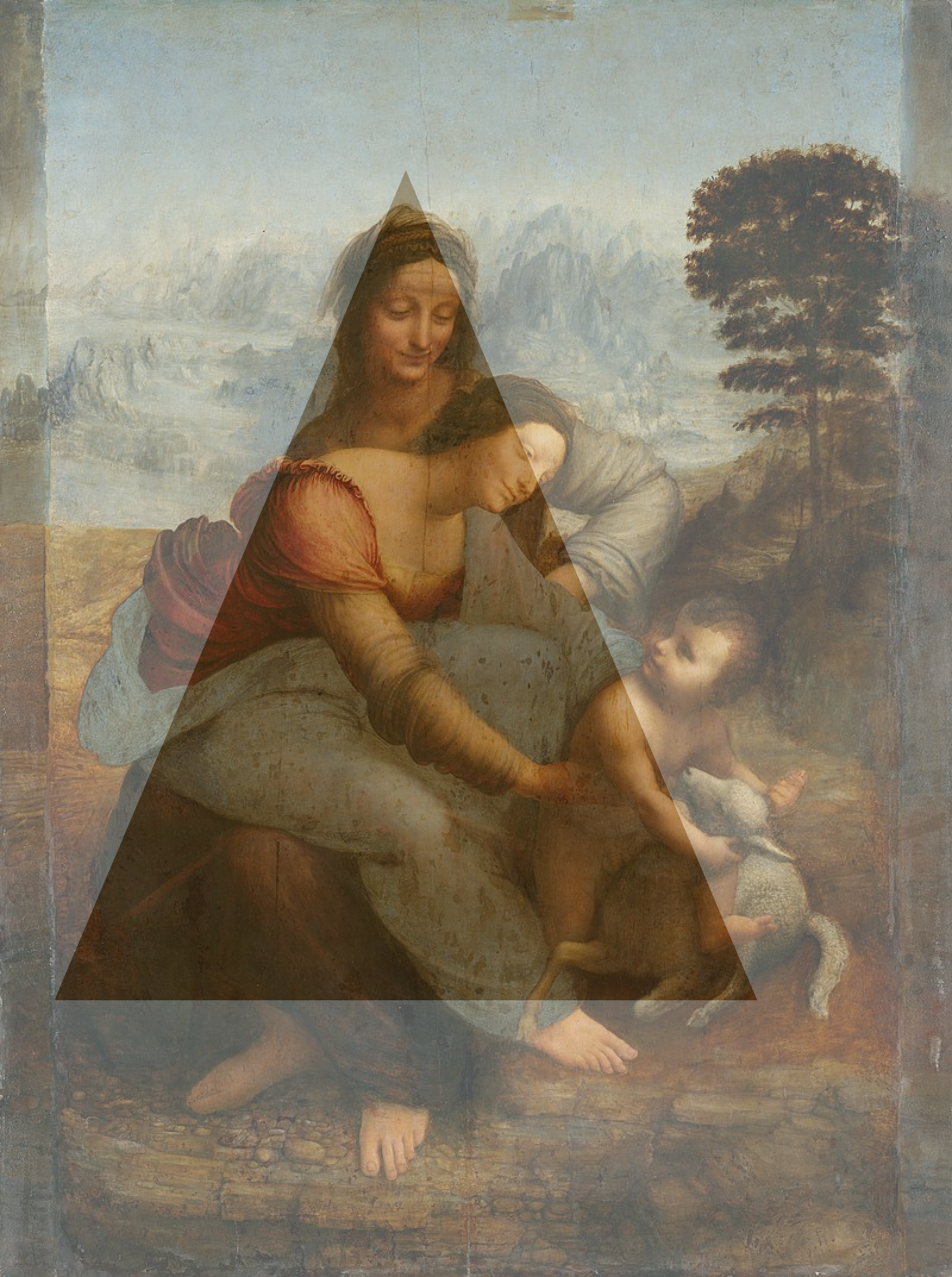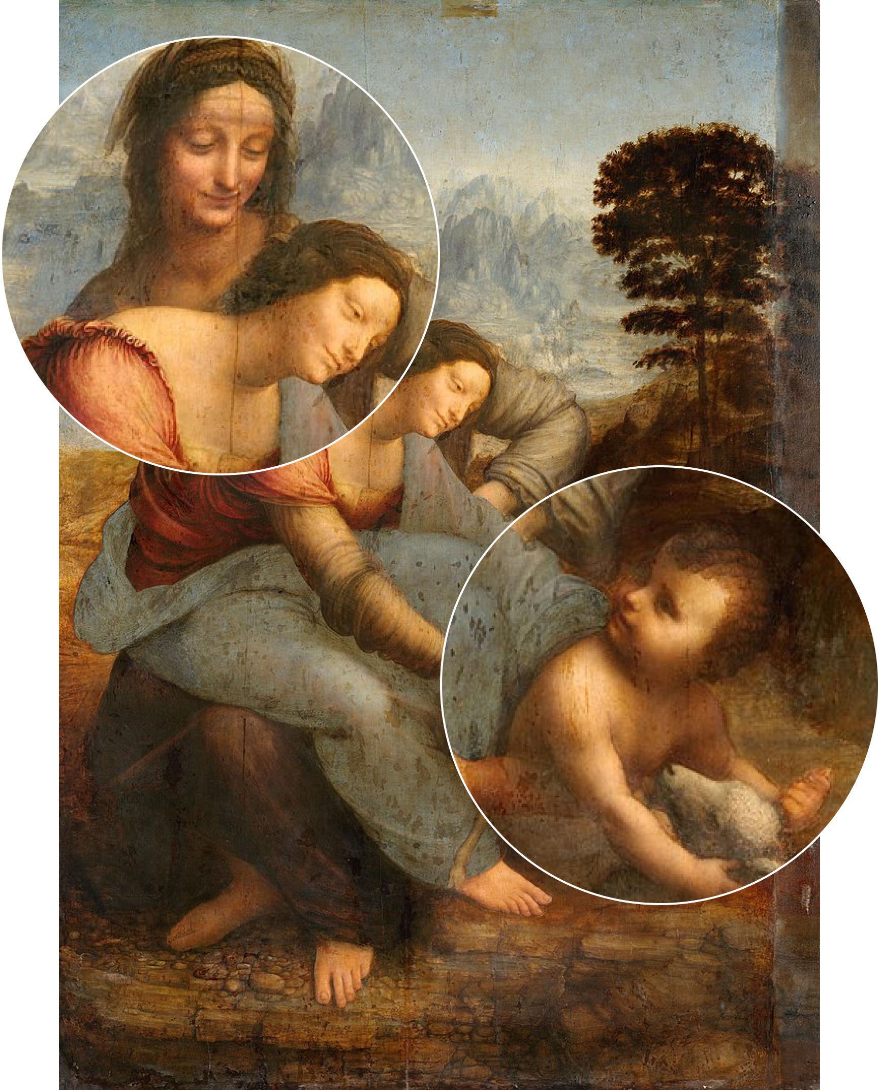 Картины, на которых Христос сидит на коленях у Мадонны, а она, в свою очередь, на коленях Святой Анны, встречались ещё в Средневековье. Но, в отличие от других картин с такой композицией, у Леонардо позы святых кажутся естественными за счёт разворота тел в три четверти.