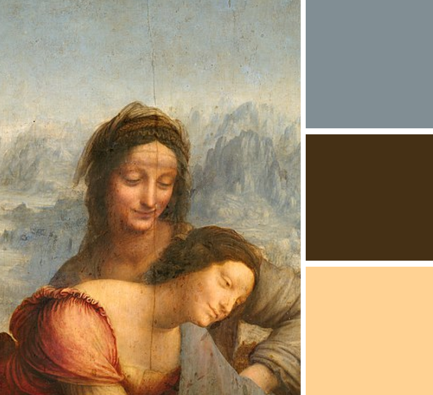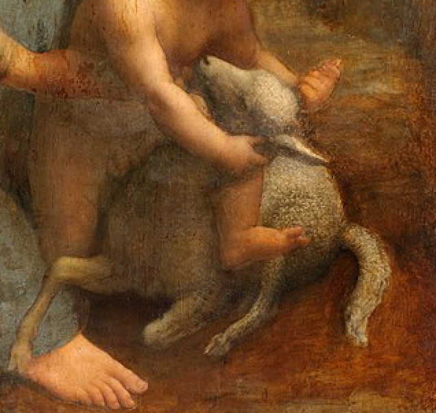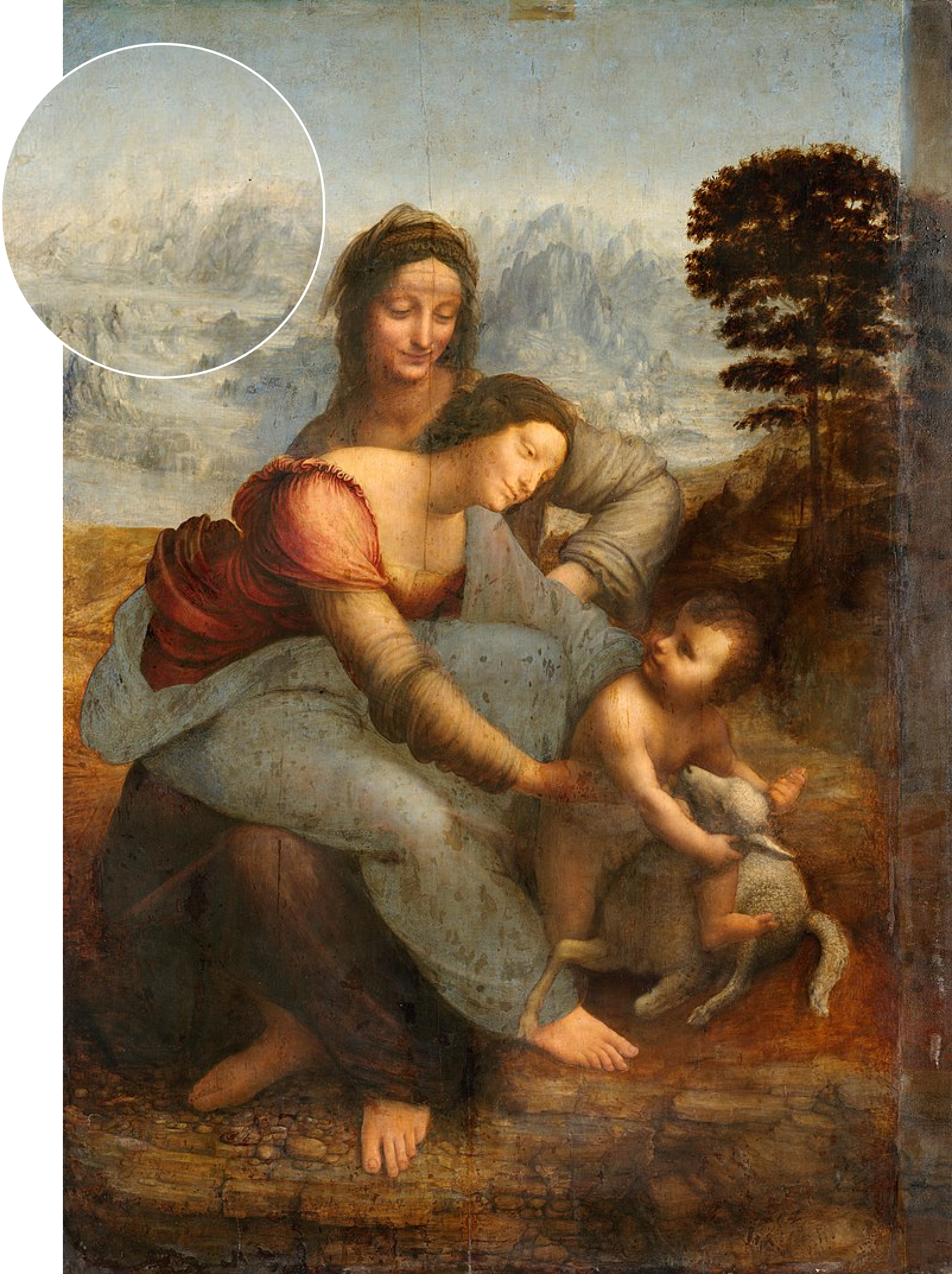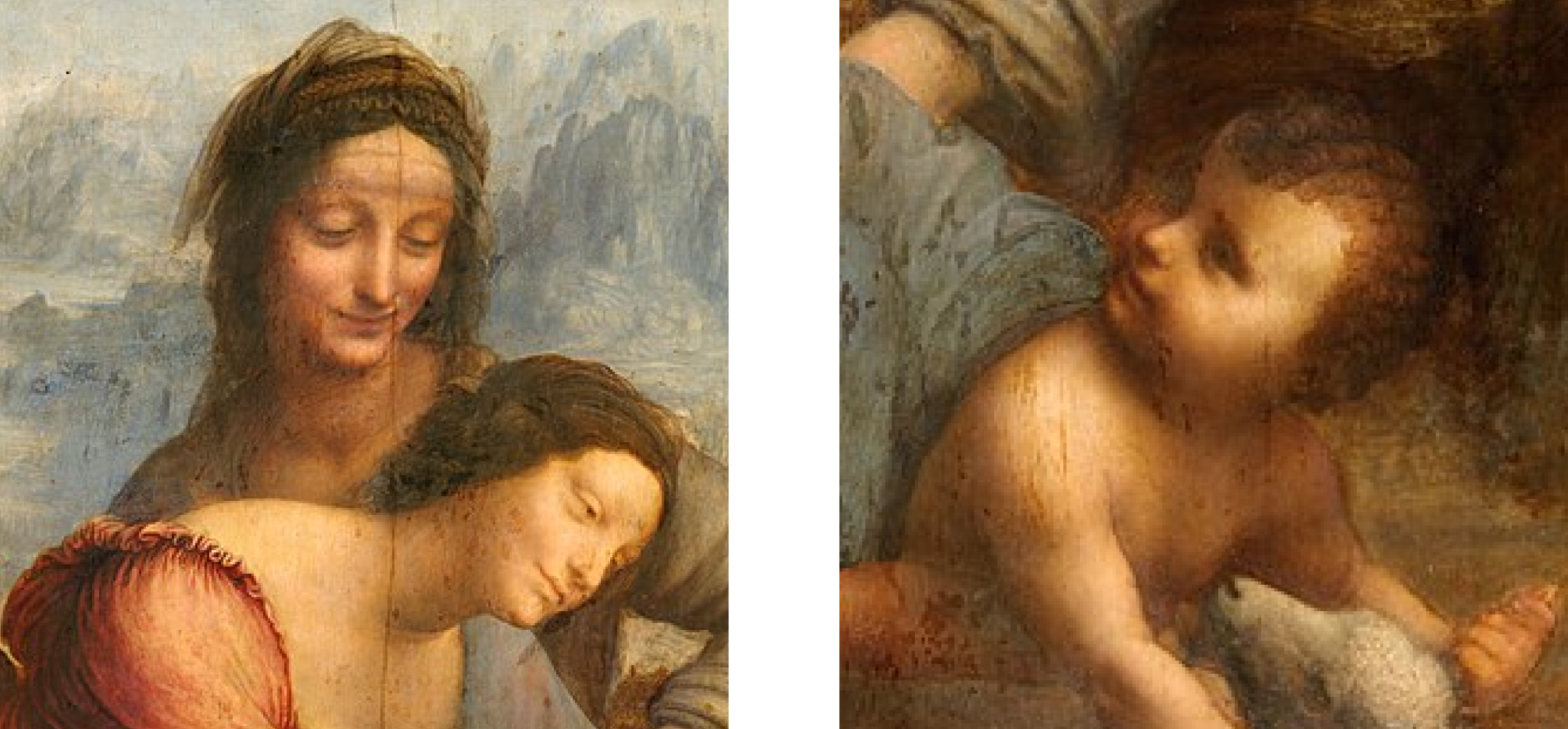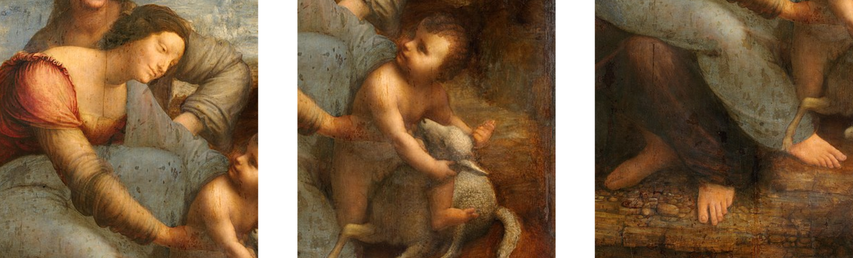 Картины, на которых Христос сидит на коленях у Мадонны, а она, в свою очередь, на коленях Святой Анны, встречались ещё в Средневековье. Но, в отличие от других картин с такой композицией, у Леонардо позы святых кажутся естественными за счёт разворота тел в три четверти.