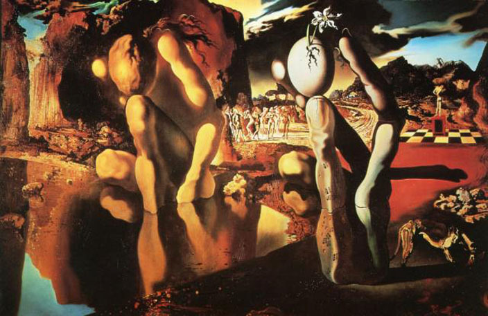 Дали часто использовал популярный среди сюрреалистов приём: объединял несочетаемые образы и предметы, создавал абсурдные композиции.