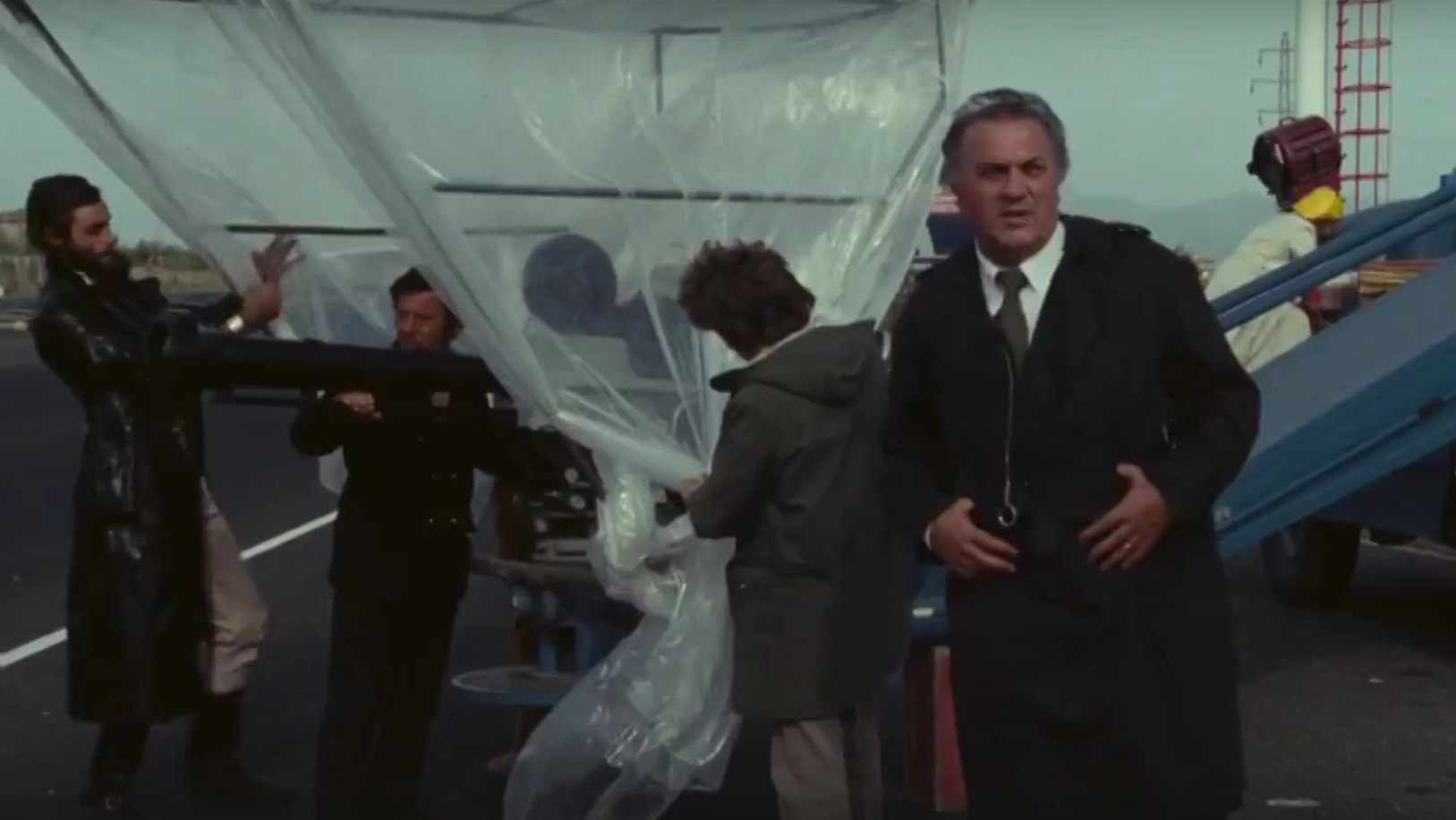 Внутри фильма можно выделить четыре повествовательных уровня. Первый — это фильм Феллини «Интервью». Второй — это фильм о Феллини, который внутри фильма «Интервью» снимают японцы. Третий — это фильм, который Феллини-персонаж снимает для японцев: там он рассказывает о детстве и том, как пришёл работать на студию «Чинечитта». И, наконец, четвёртый фильм мы видим как раз на студии: там снимают картину про Индию.