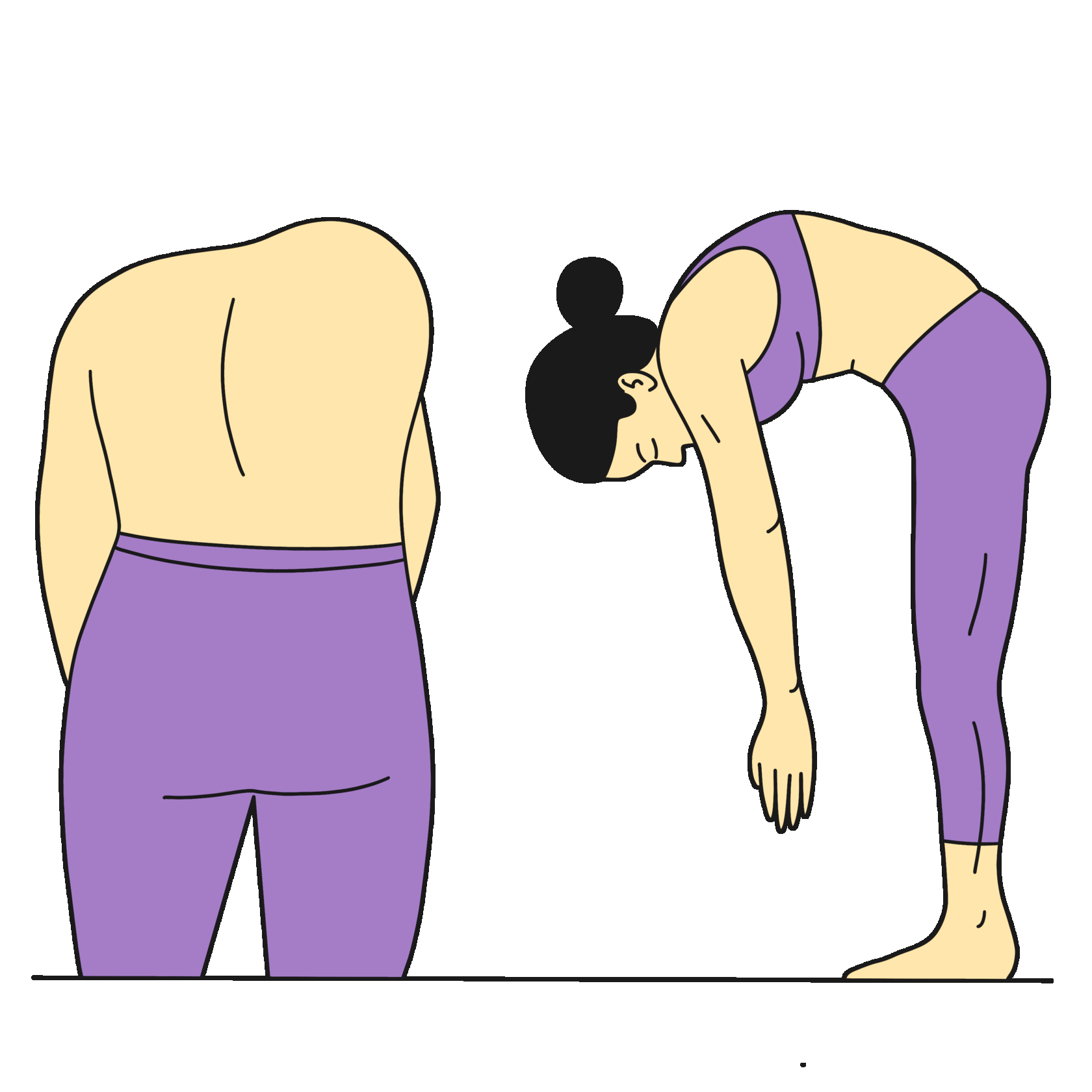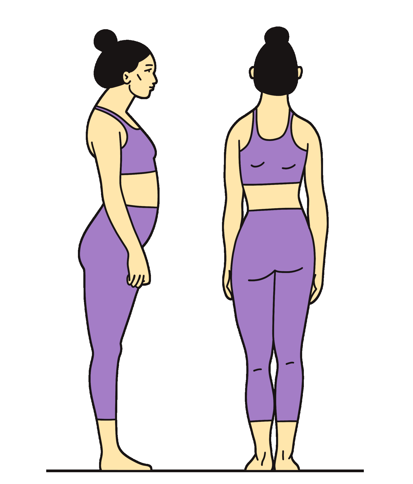 Можно определить по точкам на краях таза, которые мы поставили во время первого теста.Таз принимает неправильно положение, если мы носим обувь на высоком каблуке, неверно выполняем упражнения для ягодиц и ведём сидячий образ жизни.