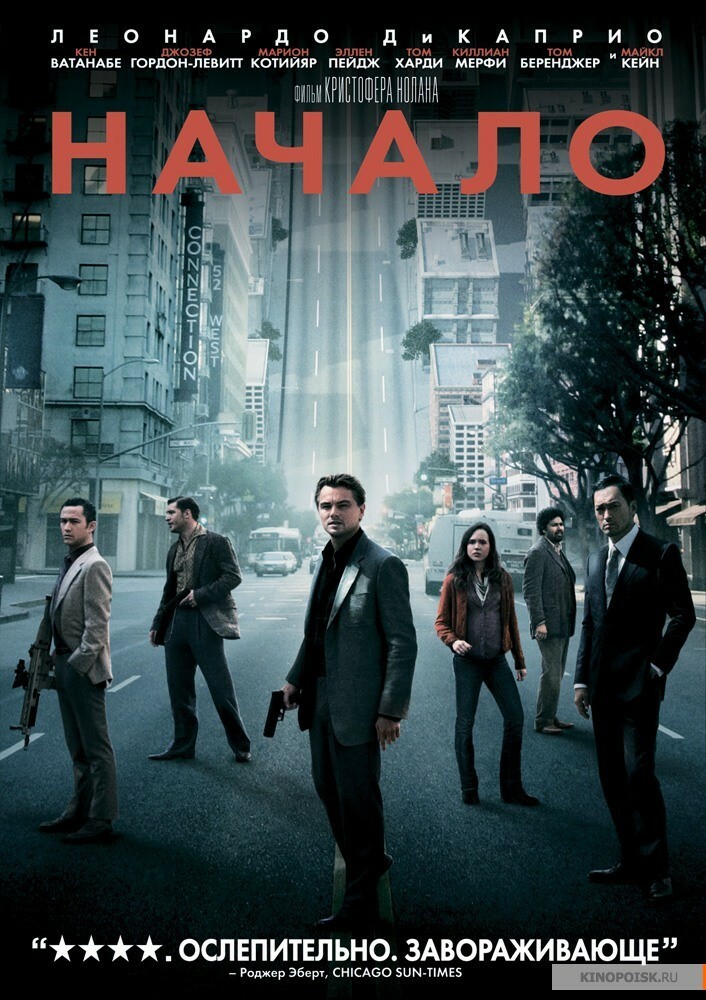 В кульминационной части фильма герои последовательно погружаются в четыре уровня сна — сюжет разворачивается параллельно на пяти временных отрезках и работает по принципу матрёшки.