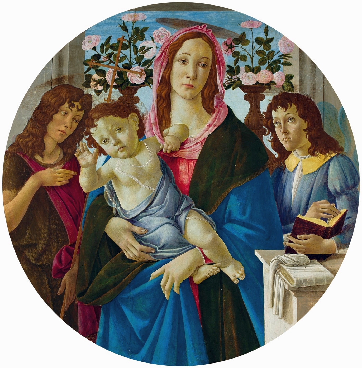 Боттичелли представил Мадонну как изящную рыжеволосую девушку с задумчивым, меланхоличным лицом, слегка склонённой головой и длинным прямым носом. Этот женский типаж Сандро Боттичелли повторял во многих своих работах. Существует теория, что Боттичелли списывал своих рыжеволосых героинь с первой красавицы Флоренции Симонетты Веспуччи, в которую был влюблён его покровитель Джулиано Медичи. Однако более вероятно, что этот образ — отражение характерного для эпохи идеала женской внешности, который Боттичелли воплотил в своих работах.