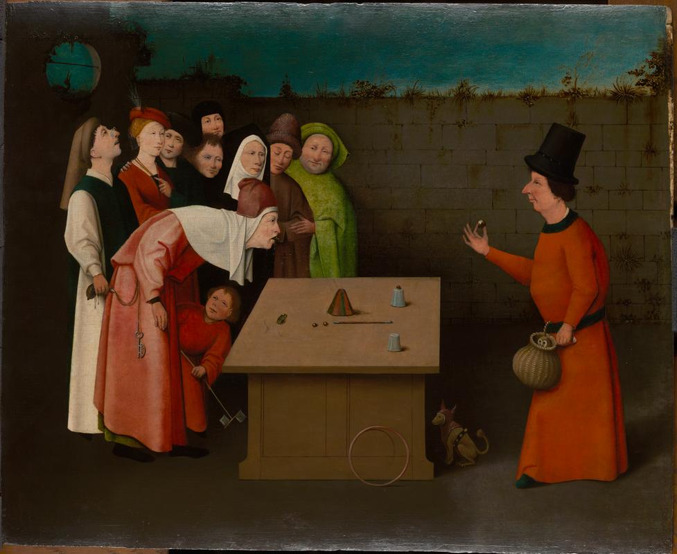 В основу сюжета картины легла фламандская пословица о том, как обманщик становится посмешищем для детей. Обращение к пословицам было типичным для Босха, поэтому сюжет работы стал аргументом в пользу его авторства.