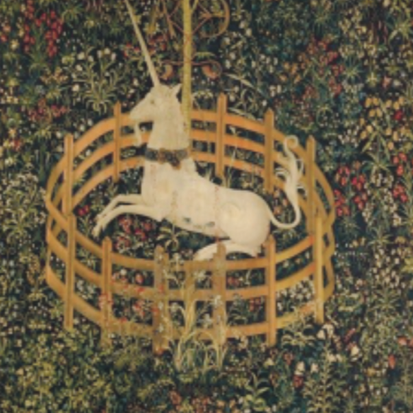 Символ чистоты, атрибут Девы Марии. По легенде, единорог это животное, которого невозможно поймать силой. Только чистая, непорочная дева может приручить его.