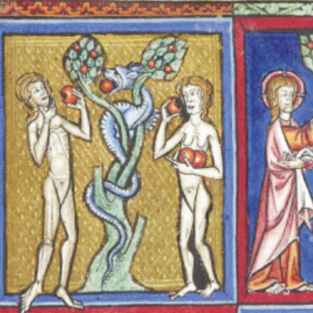 Символ греха и запретного плода из истории о грехопадении Адама и Евы. Причина в том, что в латыни для слов «яблоко» и «зло» используется одно обозначение — malum.