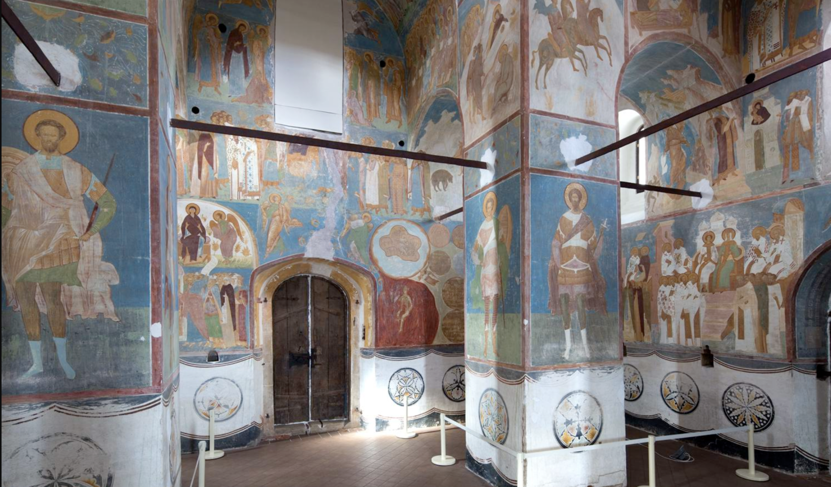 На столпах — опорах для сводов — писали святых воинов и мучеников.
